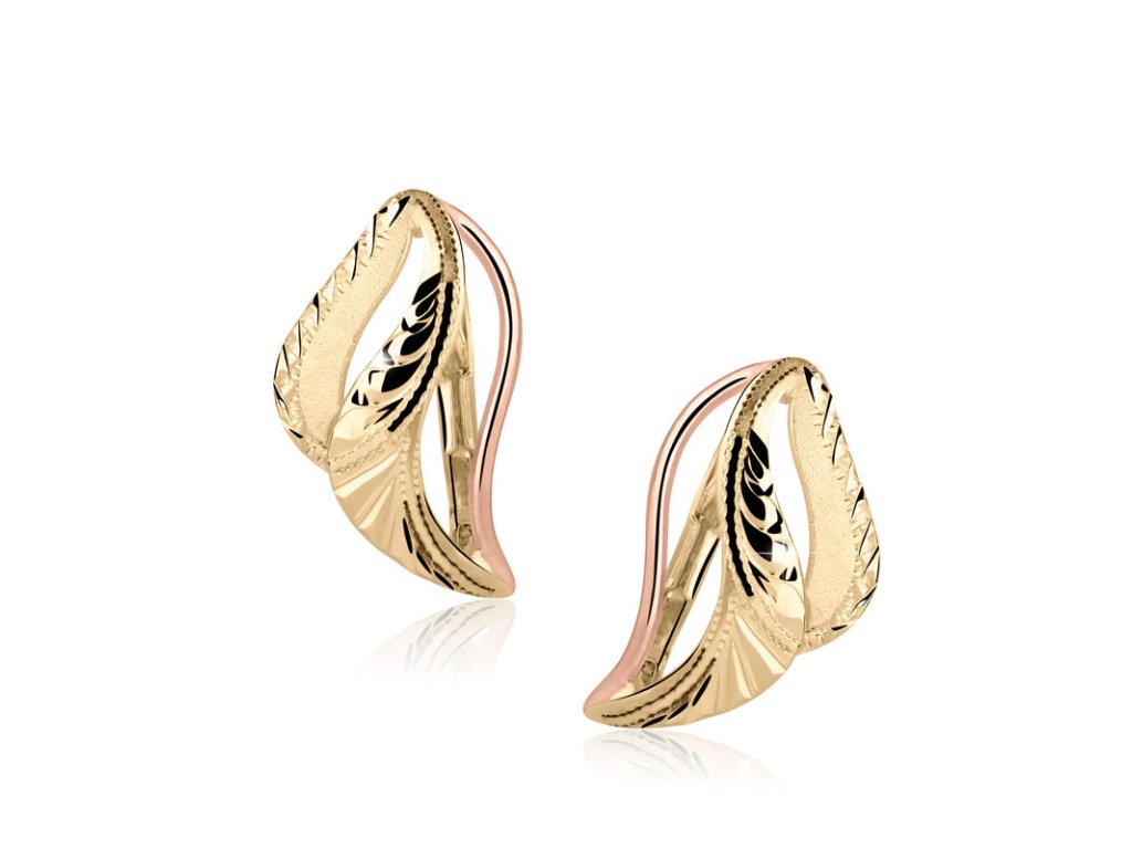 Zlaté dámské náušnice v kombinaci žlutého a červeného zlata.