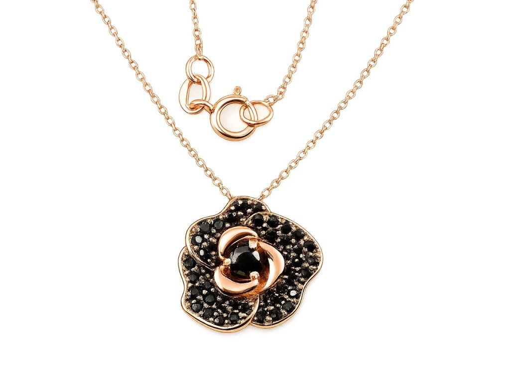 Zlatý dámský náhrdelník s růží v růžovém zlatě 42 cm.