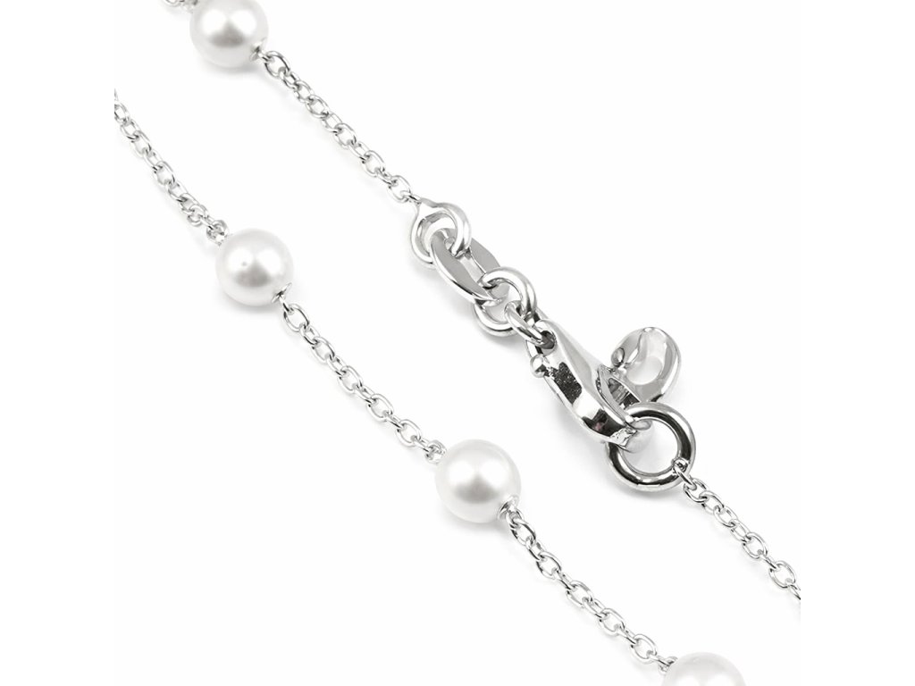 Zlatý dámský náramek s říčními perličkami o průměru 3.5mm v bílém 14ti karátovém zlatě ryzosti 585/1000 o nastavitelné délce 17 a 19 cm na karabinový zápon. Řetízek je typu anker o šíři 1.1mm, váha 1.95g.