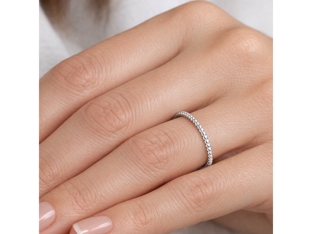 Zlatý dámský prsten s korálkovým okrajem v bílém 14ti karátovém zlatě ryzosti 585/1000, váha +/- 1.40g.
