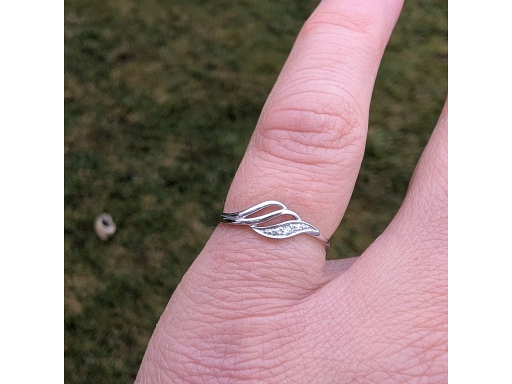 Dámský prsten se zirkonem v bílém 14ti karátovém zlatě ryzosti 585/1000. Prsten je zdoben čirým zirkonem, váha +/- 1.20g.