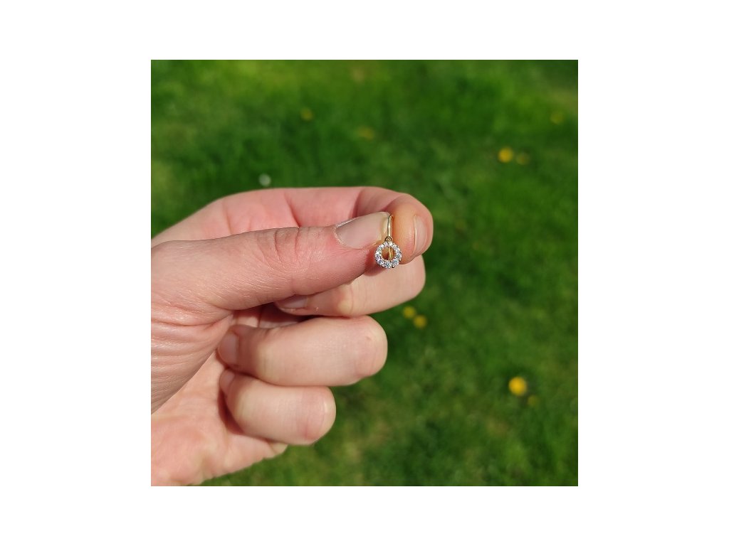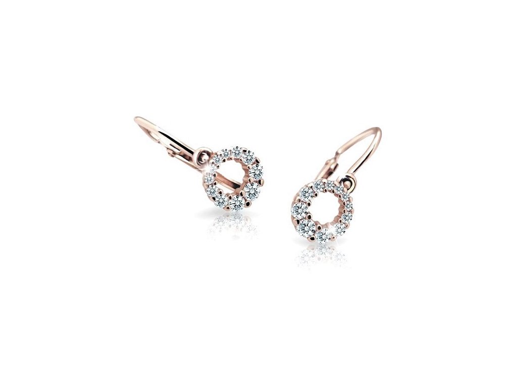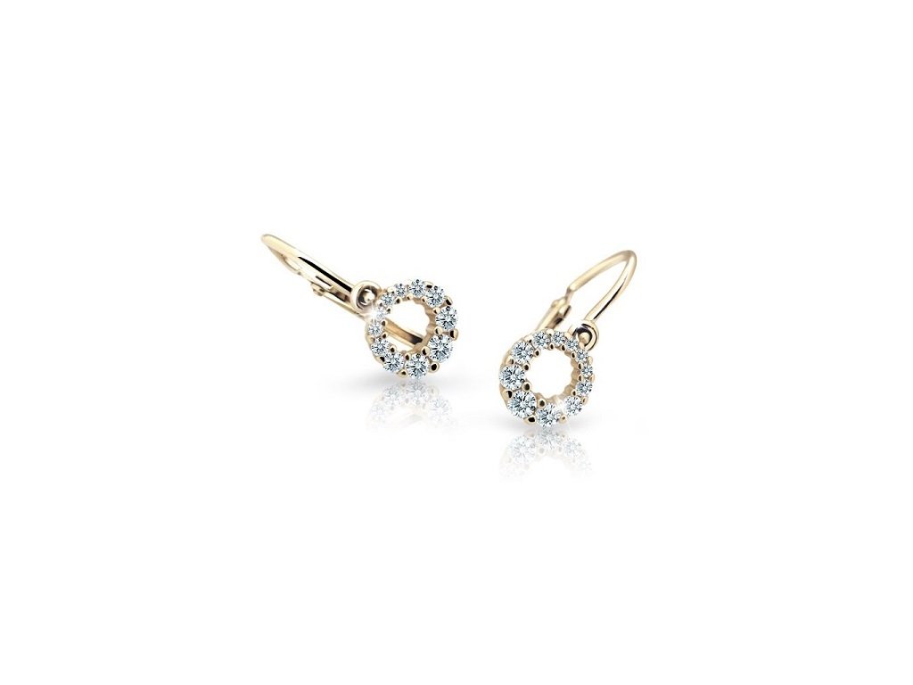 Zlaté dětské náušnice zdobené brilianty ve tvaru kolečka v bílém/žlutém/růžovém 14ti karátovém zlatě ryzosti 585/1000 na dětský přední zápon tzv. brizuru.