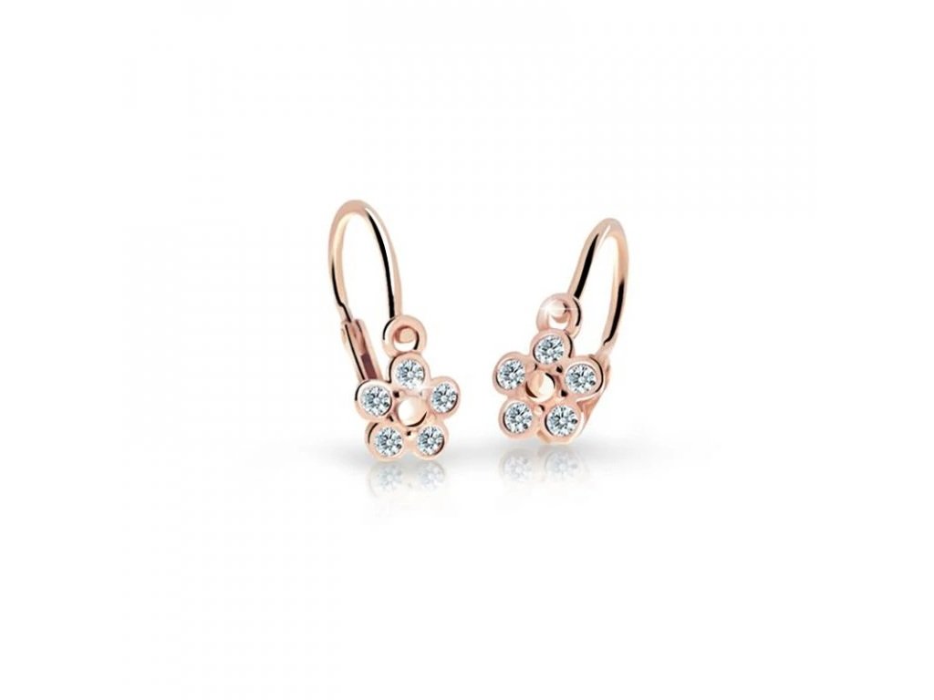 Zlaté dětské náušnice ve tvaru kytičky v růžovém zlatě