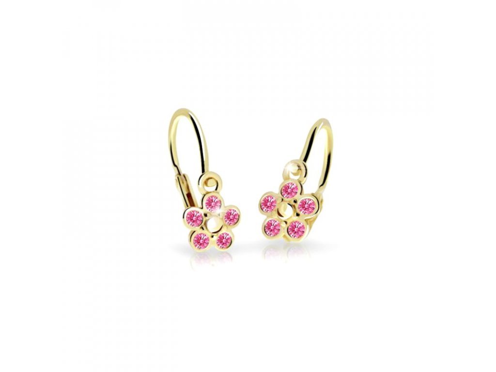 Dětské zlaté naušnice kytička s kamínkem 1702