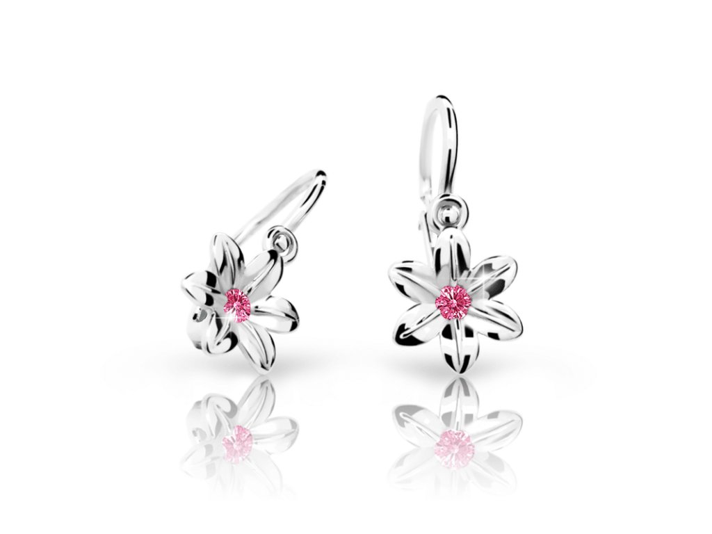 Dětské zlaté náušnice růžový kamínek 2454