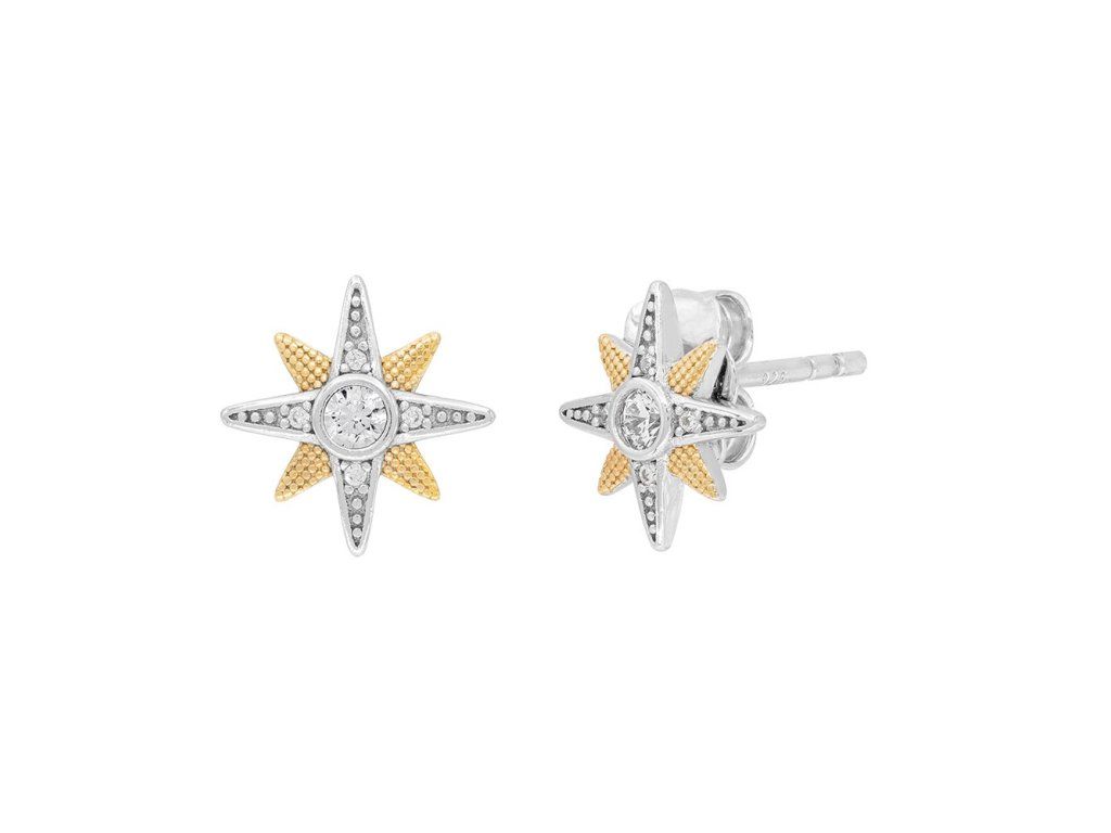 Stříbrné náušnice ve tvaru hvězdy v kombinaci se žlutým zlacením ryzosti 925/1000 na puzetový zápon.