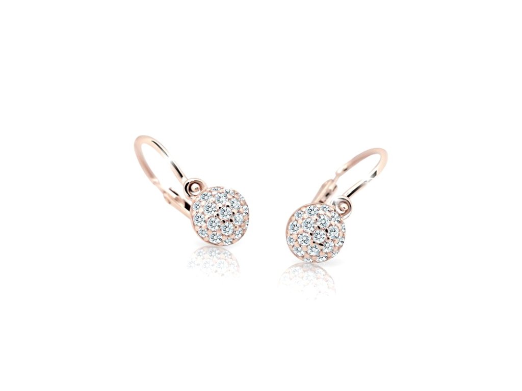 Dětské zlaté náušnice s brilianty Cutie Jewellery v bílém/žlutém/růžovém 14ti karátovém zlatě ryzosti 585/1000 na dětský přední zápon tzv. brizuru.