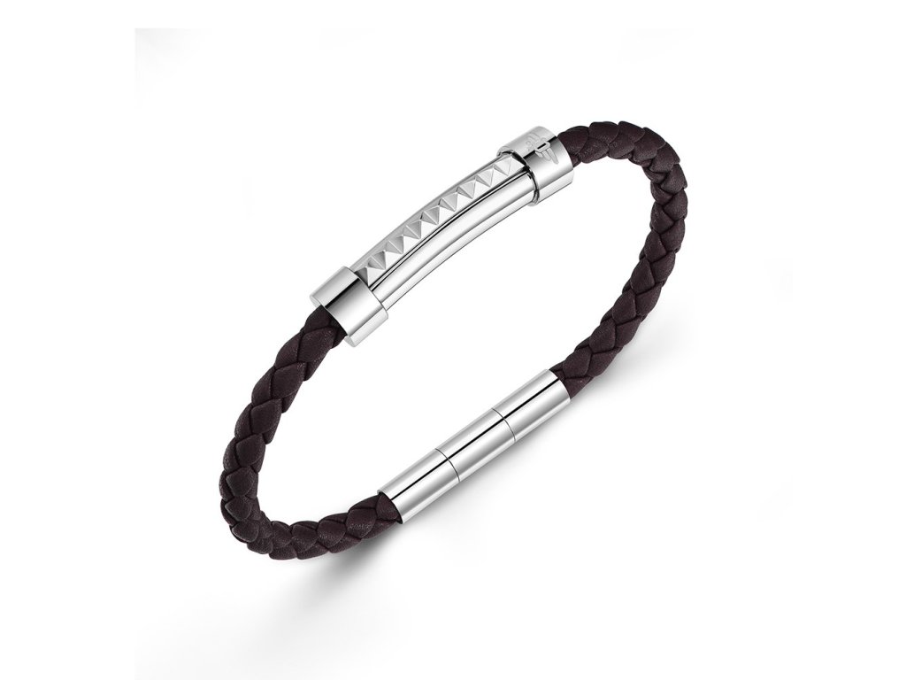 Pánský náramek Police v kombinaci kůže a oceli Geometric Metal ve velikosti L.