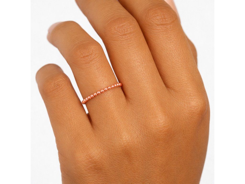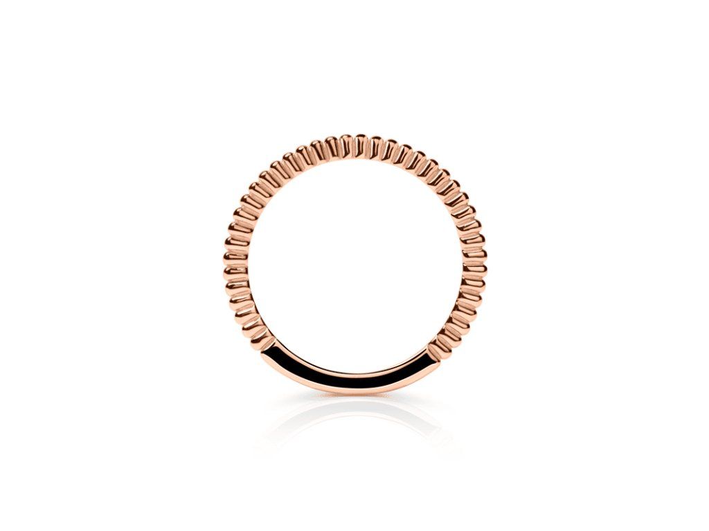 Moderní dámský prsten s korálkovým okrajem v růžovém 14ti karátovém zlatě ryzosti 585/1000, hmotnost +/- 1.40g.