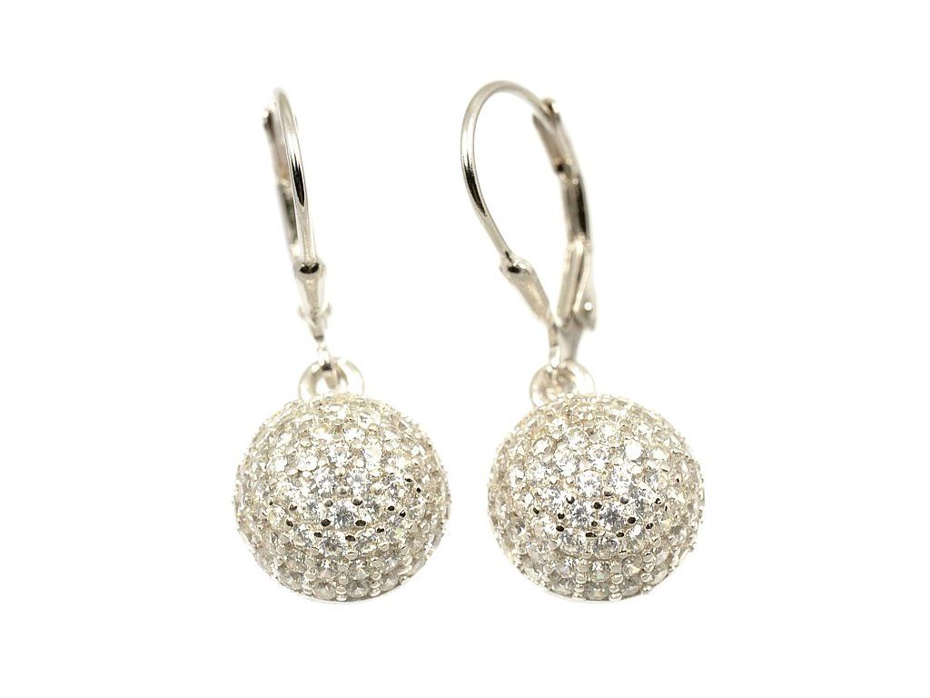 Stříbrné visací náušnice s ozdobou tvaru koule .