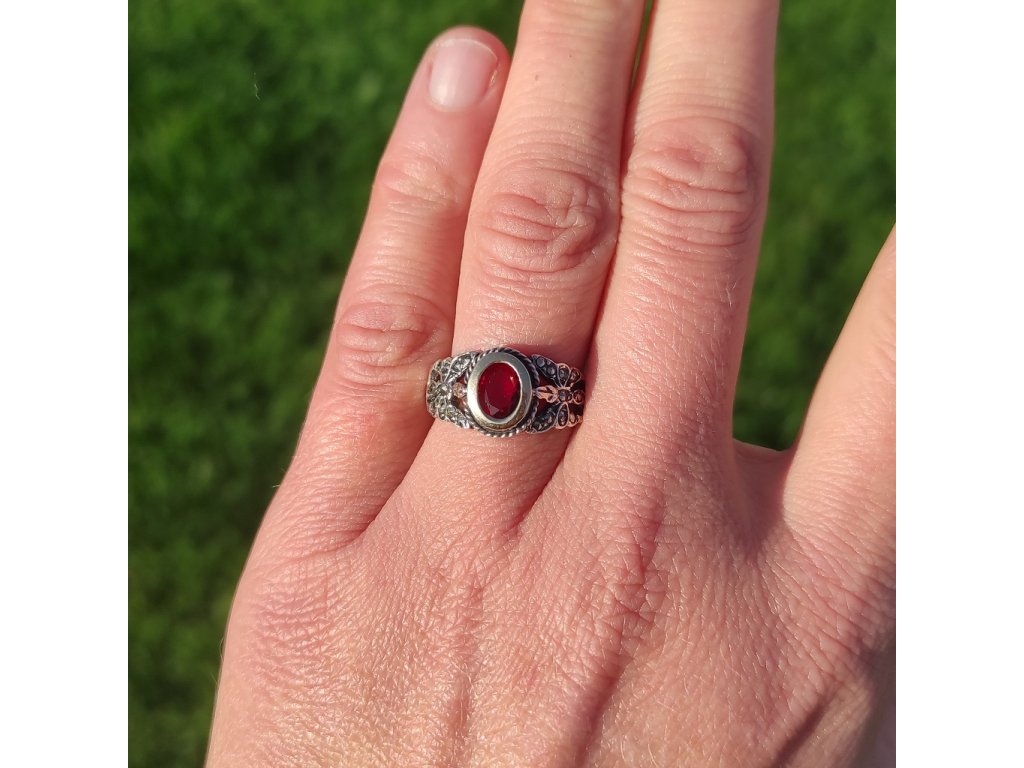 Stříbrný prsten s rubínem 1238