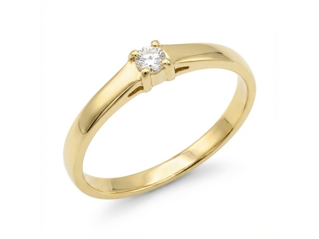 Zlatý prsten s briliantem o průměru 2.5mm ve žlutém 14ti karátovém zlatě ryzosti 585/1000. Šíře ozdoby je 3mm, šíře spodní části prstenu – šíny 1.8mm, váha +/- 1.35g (velikost 55).