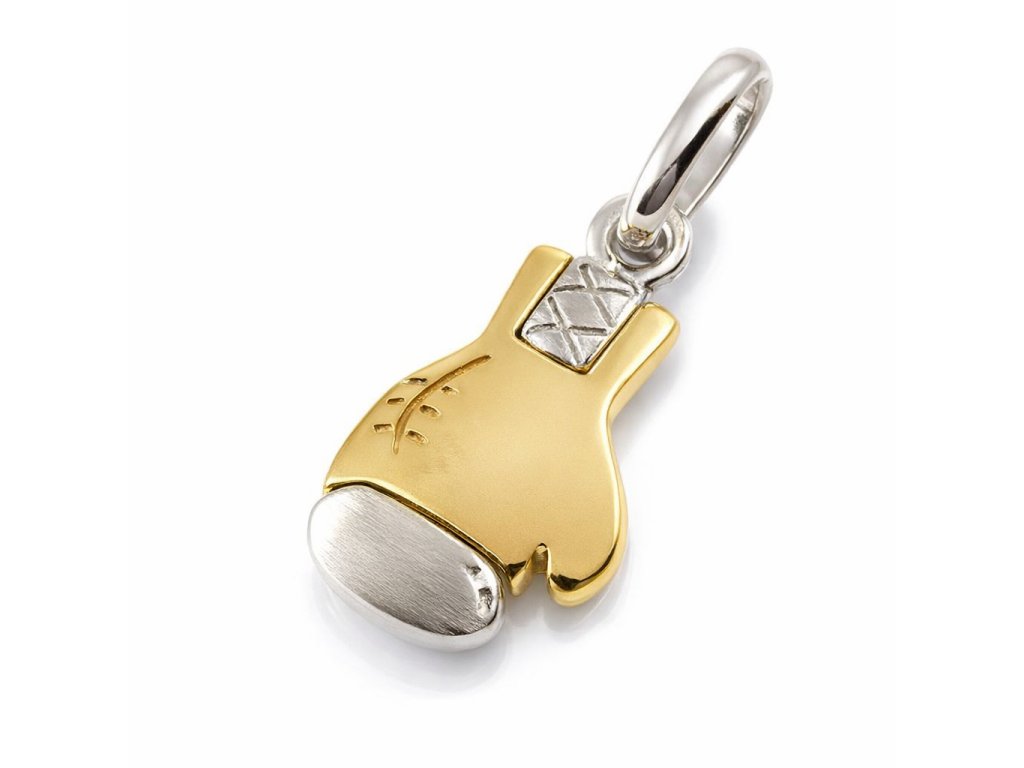 Zlatý přívěsek ve tvaru boxerské rukavice v kombinaci žlutého a bílého 14ti karátového zlata ryzosti 585/1000 o rozměru 14x10, maximální délka 22mm, hmotnost 1.85g, povrchová úprava lesk/mat.
