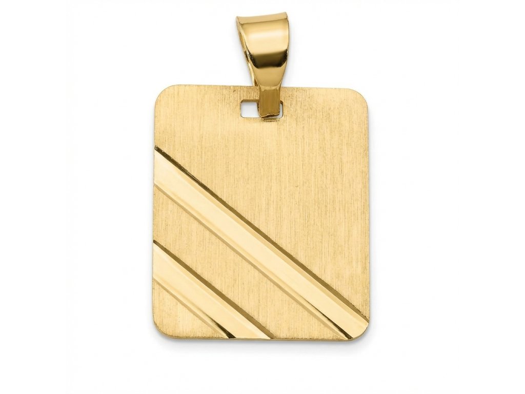 Zlatá destička ve žlutém 14ti karátovém zlatě ryzosti 585/1000 o rozměru 17x13mm, celková délka 21mm, váha 1.27g. Přívěsek je zdoben jemným matem.