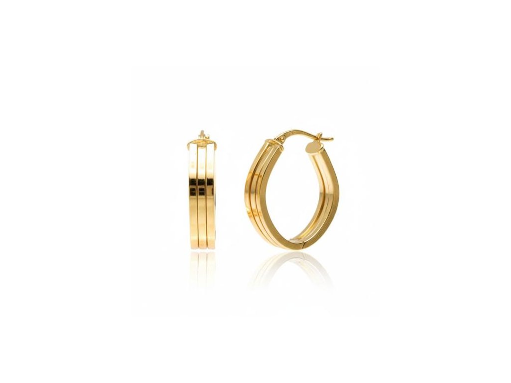Zlaté zvlněné kruhy ve žlutém 14ti karátovém zlatě 585/1000. Rozměr náušnice je 23x5mm, váha 2.75g.