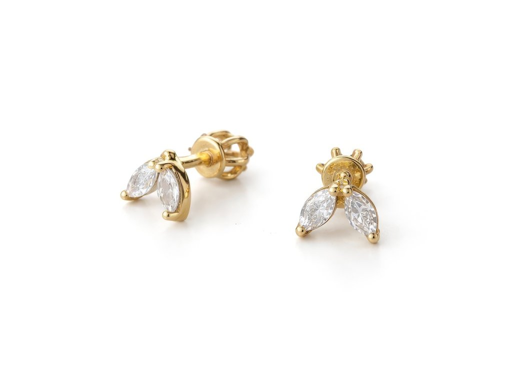 Zlaté dámské náušnice s oválnými zirkony na šroubek.