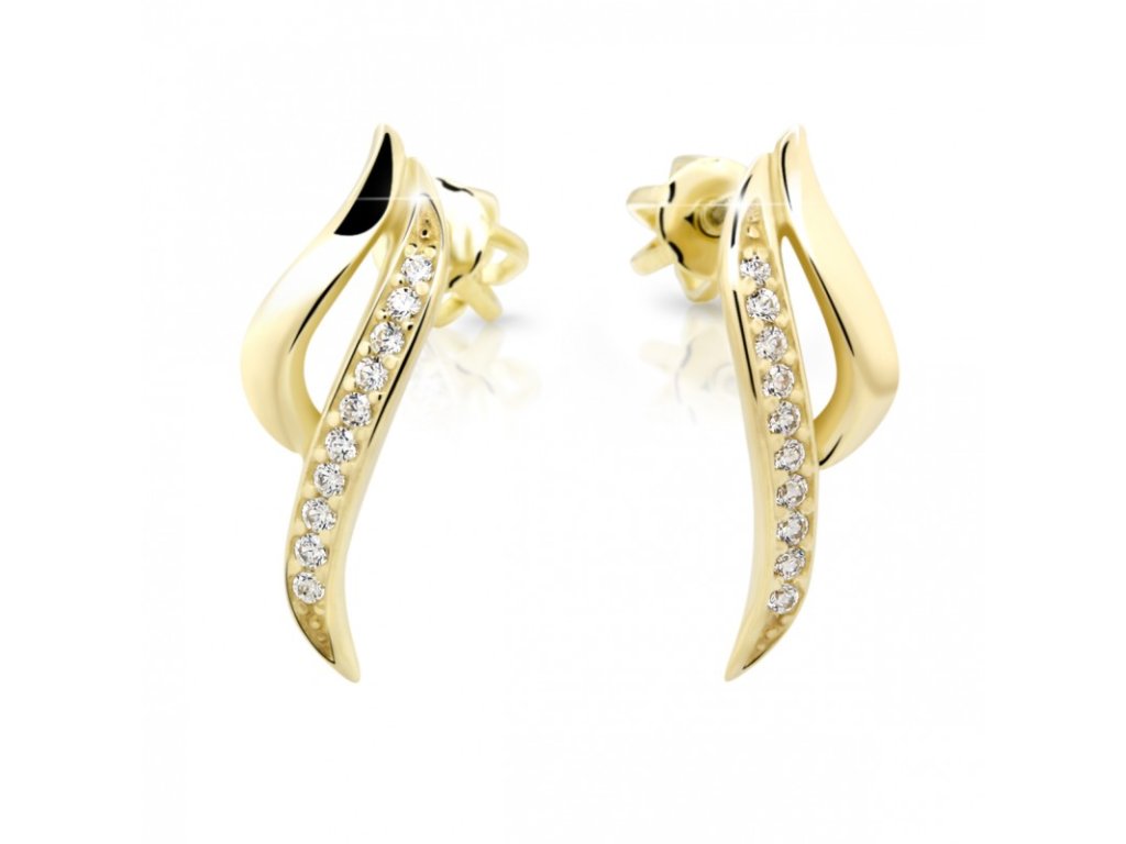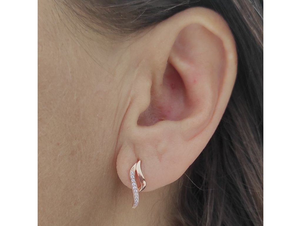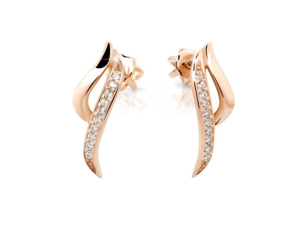 Nádherné dámské náušnice zdobené brilianty v bílém/žlutém/růžovém 14ti karátovém zlatě ryzosti 585/1000 na šroubovací zápon. Rozměr ozdoby je 17x5mm, váha +/- 1.55g.