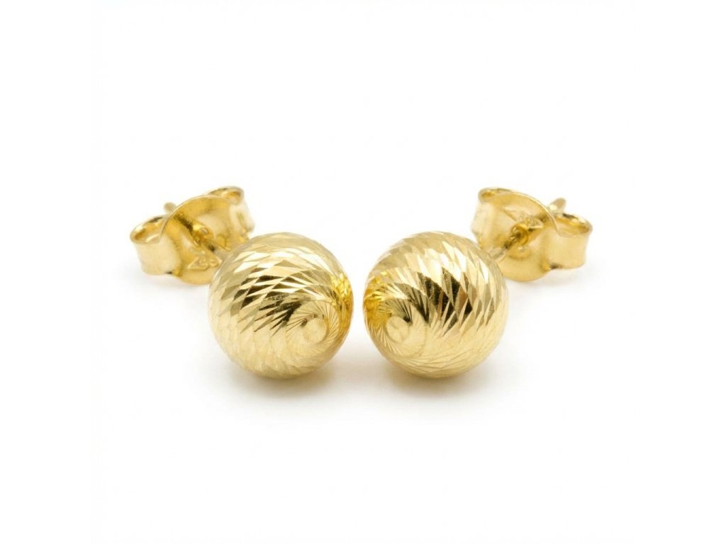 Zlaté gravírované náušnice pecky ve žlutém 14ti karátovém zlatě ryzosti 585/1000 na puzetový zápon. Průměr ozdoby je 7.7mm, váha 1.65g.