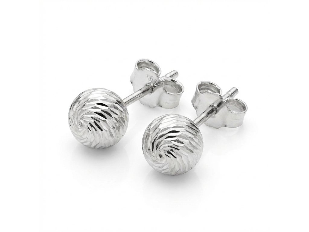Zlaté gravírované náušnice pecky v bílém 14ti karátovém zlatě ryzosti 585/1000 na puzetový zápon. Průměr náušnice je 6mm, hmotnost 1.30g.