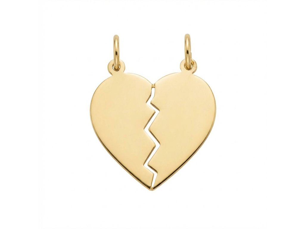Zlaté velké rozlamovací (půlící) srdce pro dva ve žlutém 14ti karátovém zlatě ryzosti 585/1000. Rozměr přívěsku je 20x20mm, váha +/- 2.10g.