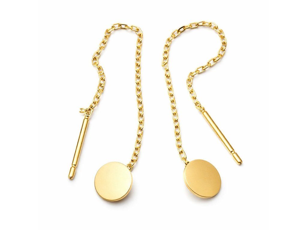 Zlaté provlékací náušnice s kulatou ozdobou.