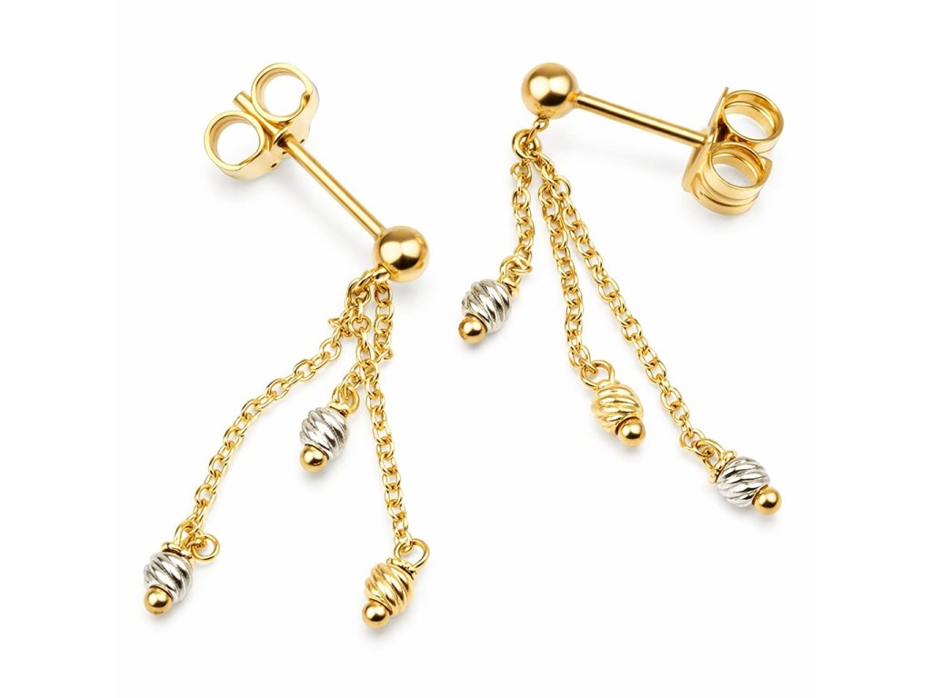 Zlaté visací náušnice žluté a bílé zlato.