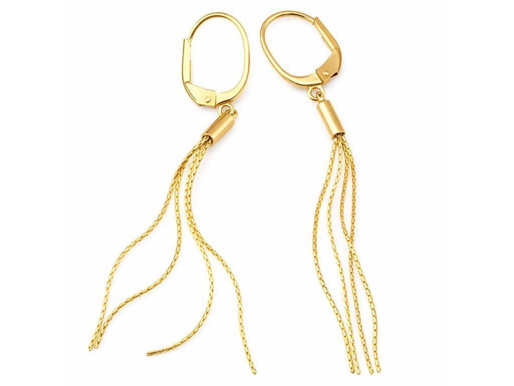 Zlaté visací náušnice ve žlutém 14ti karátovém zlatě ryzosti 585/1000 na patentový zápon. Ozdoba je řetízková o délce 44mm, délka patentu 14mm, celková délka 6.2 cm, váha 2.90 g.