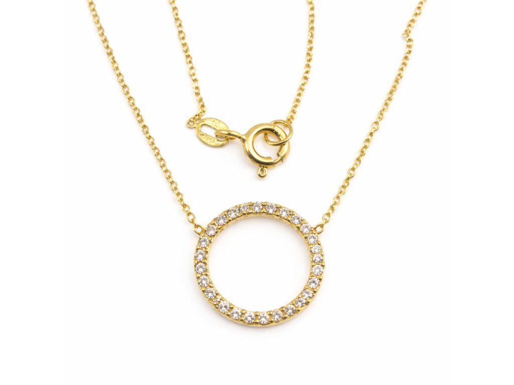 Zlatý dámský náhrdelník s kroužkem o průměru 18mm.