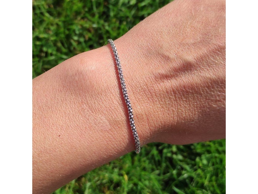 Zlatý dámský náramek v bílém 14ti karátovém zlatě ryzosti 585/1000 o délce 19cm na karabinový zápon. Šíře náramku je 2.7mm, váha 3.30g.