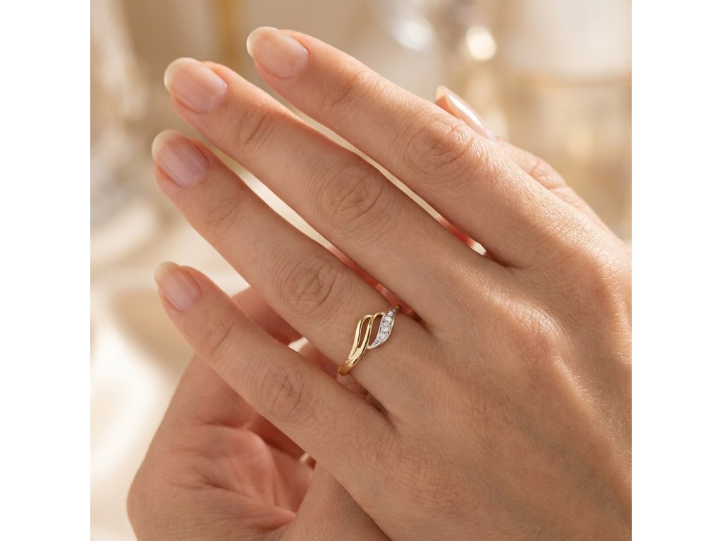 Zlatý dámský prsten v kombinaci růžového a bílého zlata