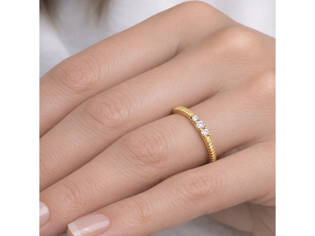 Zlatý jemný prsten se třemi zirkony