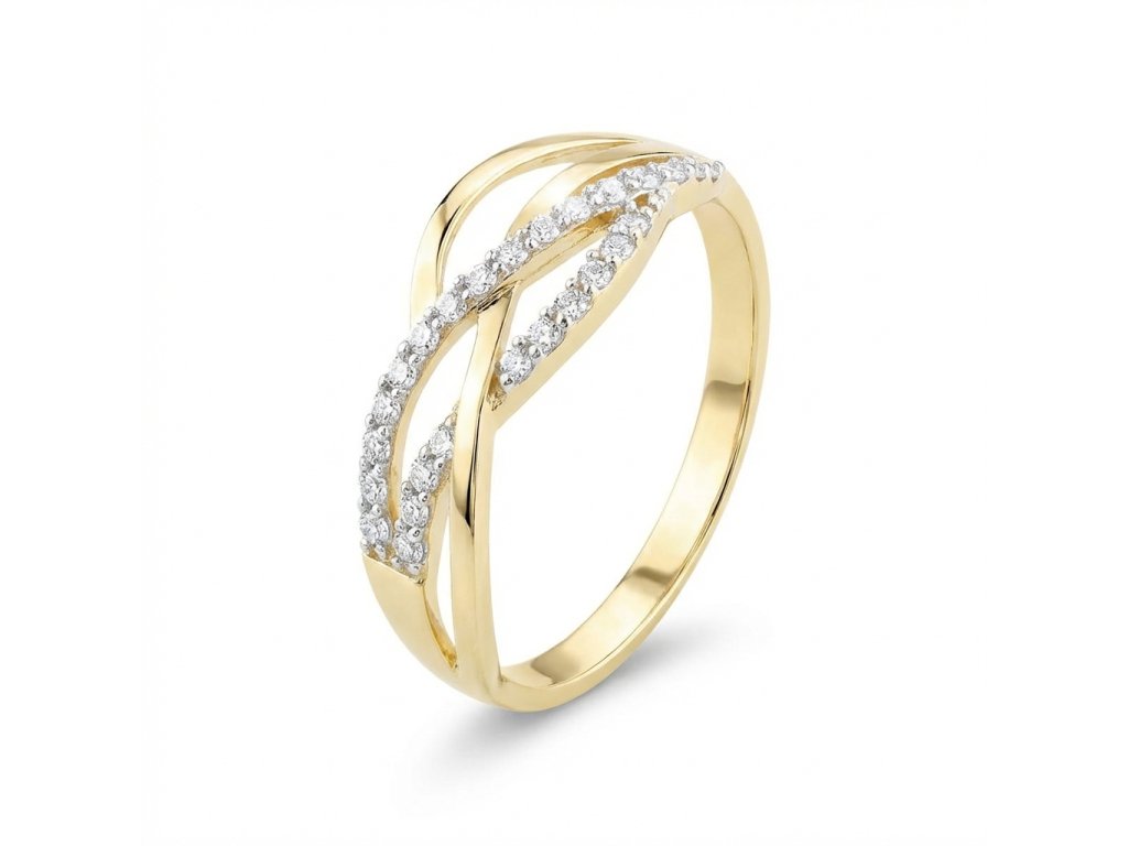 Zlatý elegantní dámský prsten se zirkony.