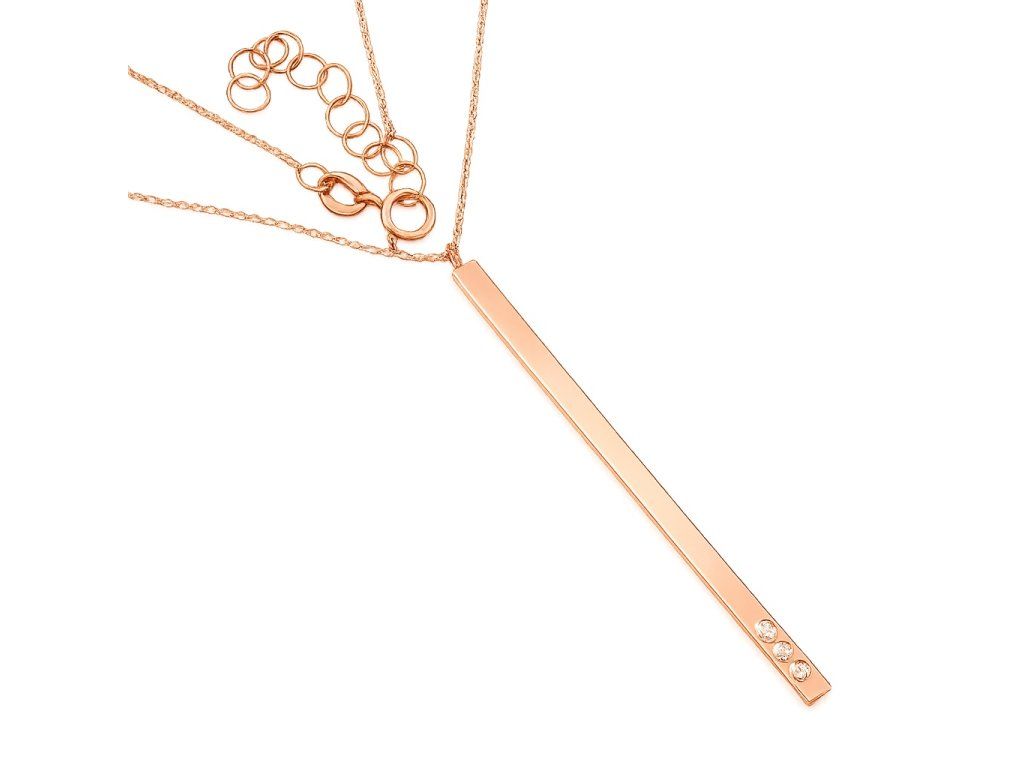 Zlatý elegantní náhrdelník zdobený 3ks čirých zirkonů v růžovém 14ti karátovém zlatě ryzosti 585/1000 o nastavitelné délce 42+3cm na zápon SK kroužek.