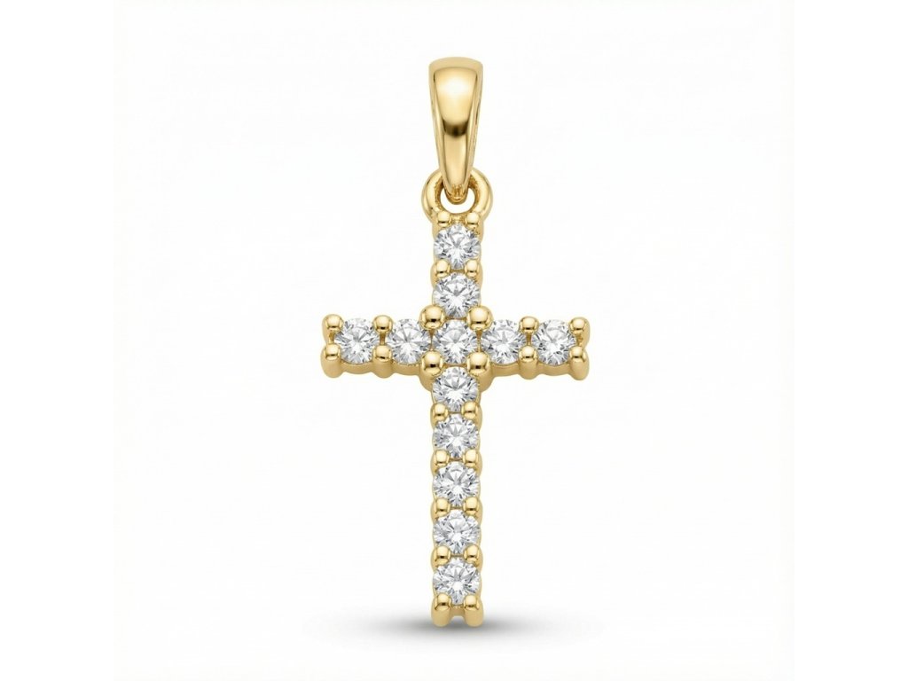 Zlatý přívěsek křížek se zirkony ve žlutém zlatě.