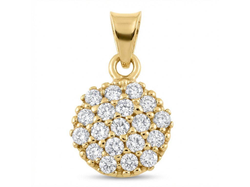 Zlatý kruhový přívěsek zdobený bílými zirkony.