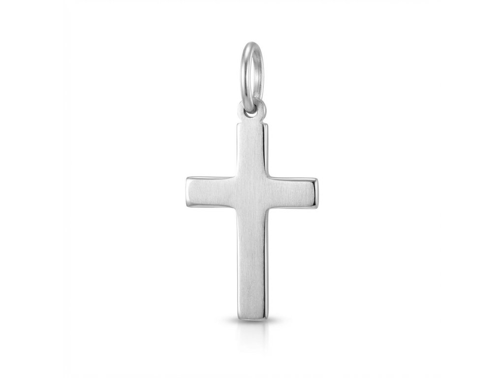 Zlatý přívěsek malý křížek v bílém 14ti karátovém zlatě ryzosti 585/1000 o velikosti 15x9mm, celková délka s ouškem 19mm, váha 0.40g, povrchová úprava lesk.