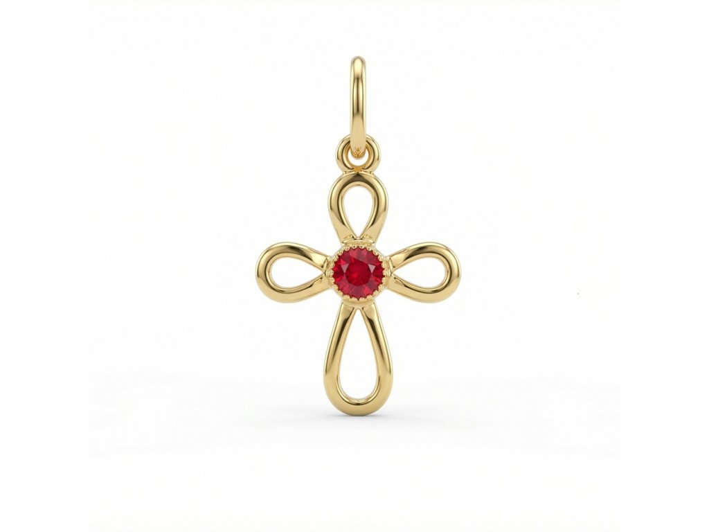 Křížek je zdoben kamínkem bílé nebo červené barvy.