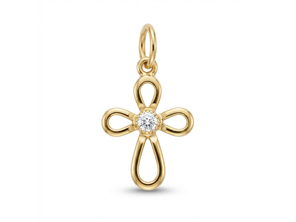Zlatý malý křížek ve žlutém 14ti karátovém zlatě ryzosti 585/1000 o rozměru 12x10mm. Celková délka přívěsku je 18mm, hmotnost +/-0.70g.