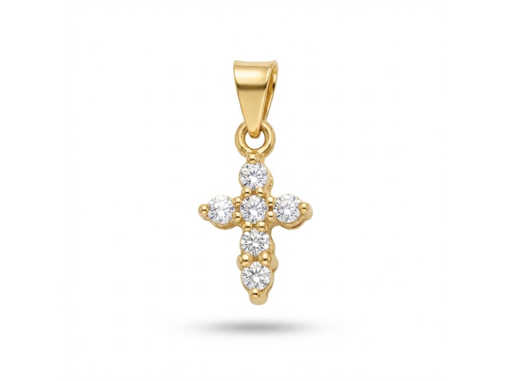 Zlatý malý křížek se zirkony ve žlutém zlatě.