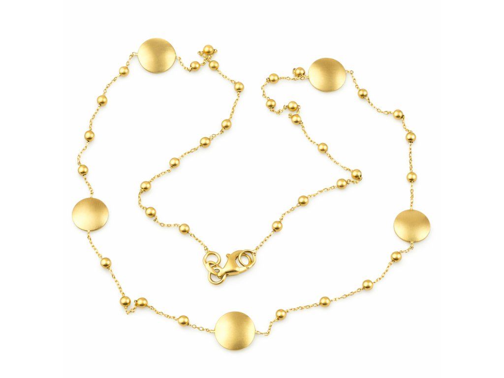 Zlatý náhrdelník s kulatými ozdobami v matném provedení .
