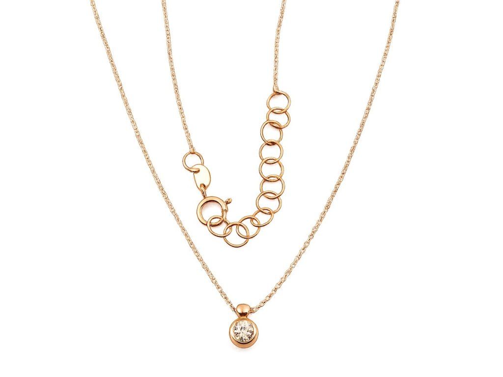 Zlatý náhrdelník s provlékacím přívěskem - čirým zirkonem v růžovém14ti karátovém zlatě ryzosti 585/1000 o nastavitelné délce 42+3cm.