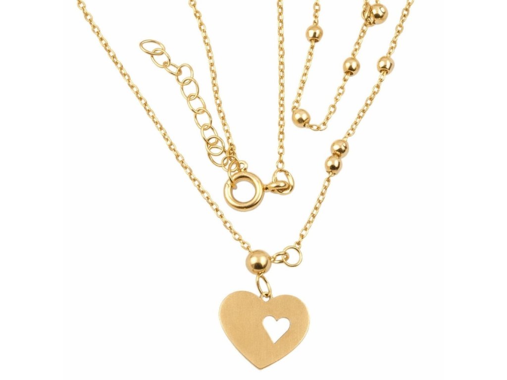 Zlatý náhrdelník se srdíčkem zdobený po jedné straně kuličkami 50+3cm