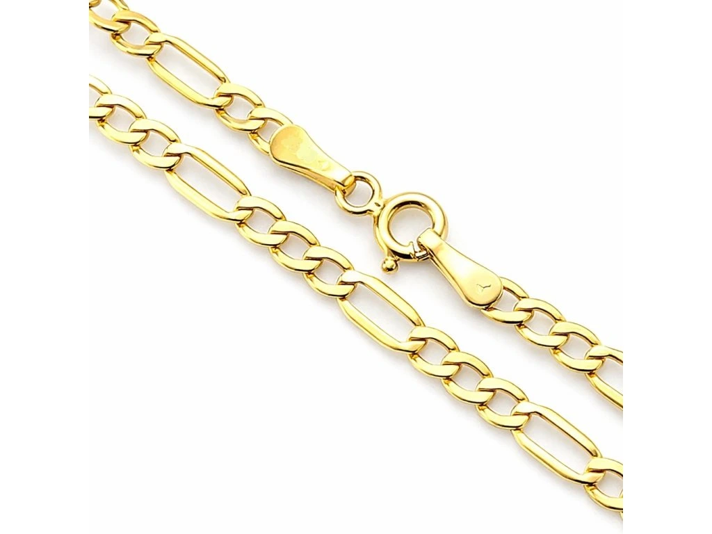 Zlatý náramek typu figaro ve žlutém 14ti karátovém zlatě ryzosti 585/1000 na zápon SK kroužek. Náramek je dlouhý 21 cm, šířka 4.5mm, váha 2.55g