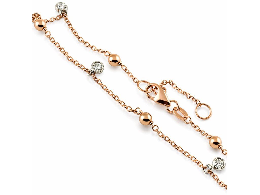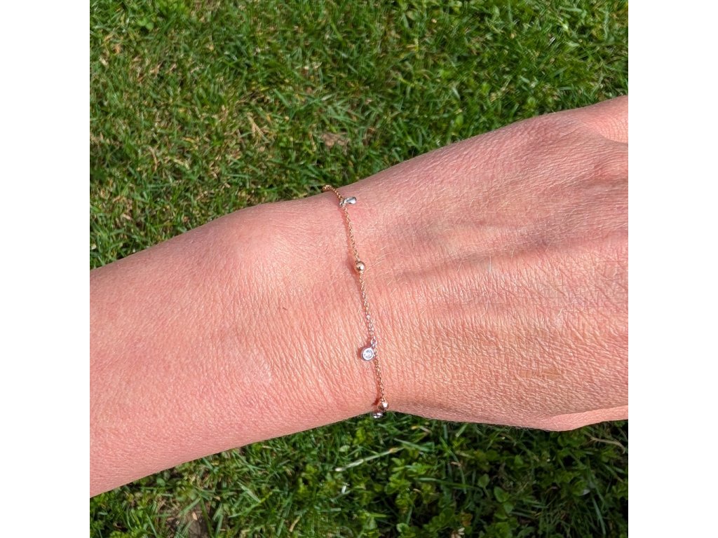 Zlatý dámský náramek s kuličkami a čirými zirkony v kombinaci růžového a bílého 14ti karátového zlata ryzosti 585/1000 o nastavitelné délce 17+2cm.