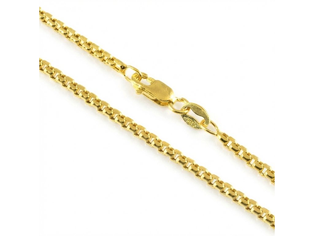 Zlatý pevný řetízek ze žlutého 14ti karátového zlata ryzosti 585/1000 o délce 55 cm na karabinový zápon. Šířka řetízku je 1.8 x1.8mm, hmotnost 5.62g. Řetízek je bytelný a pevný.