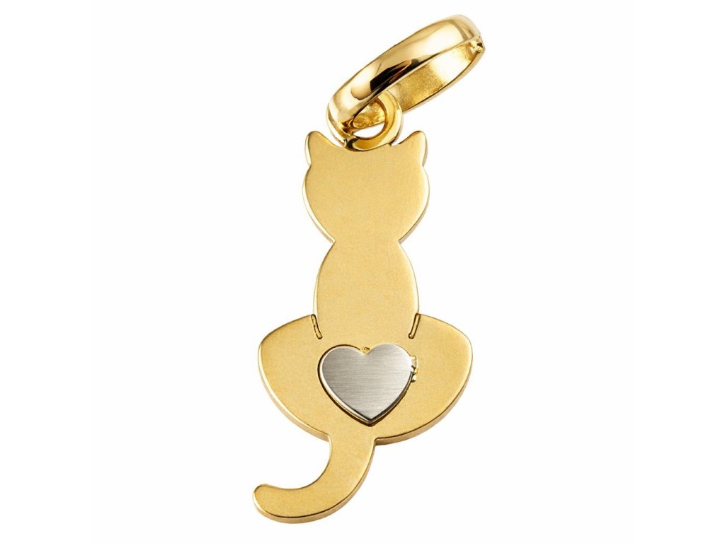 Zlatý přívěsek ve tvaru kočičky v kombinaci žlutého a bílého 14ti karátového zlata ryzosti 585/1000 o rozměru 9x19mm, celková délka 25mm, váha 0.80g.