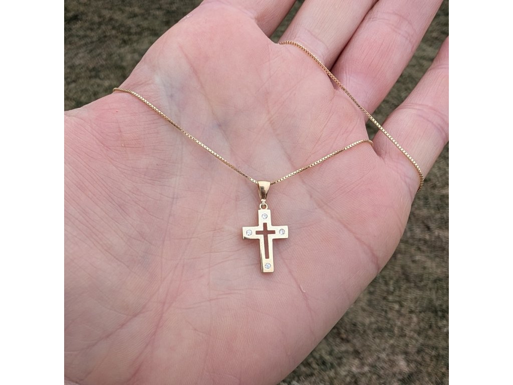 Zlatý přívěsek křížek ve žlutém 14ti karátovém zlatě.