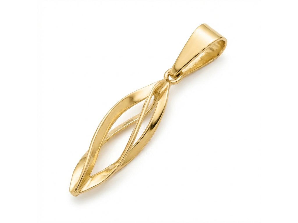 Zlatý dámský přívěsek "ovísek" ve žlutém 14ti karátovém zlatě ryzosti 585/1000 o rozměru 19x5.5mm, celková délka 27mm, váha 0.69g.