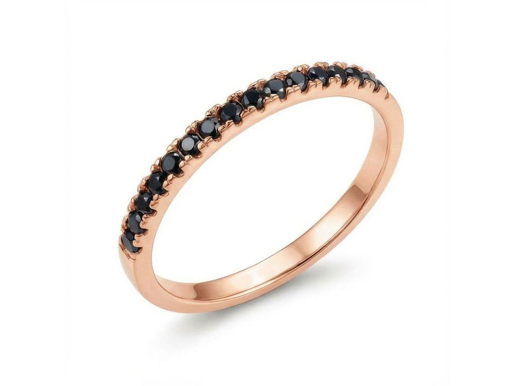 Zlatý prsten v růžovém zlatě s černými barvenými zirkony