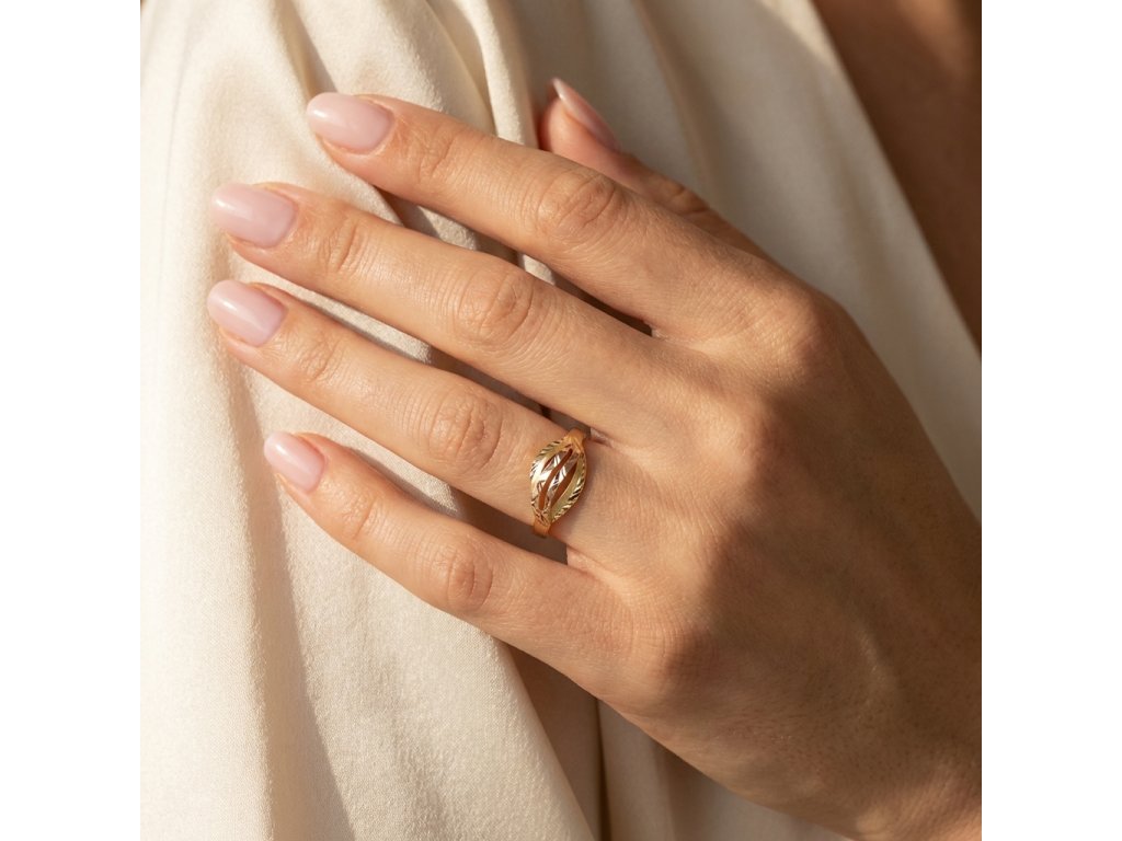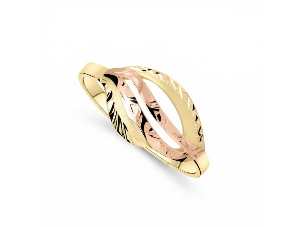 Zlatý prsten v kombinaci žlutého a červeného zlata .